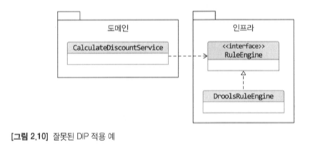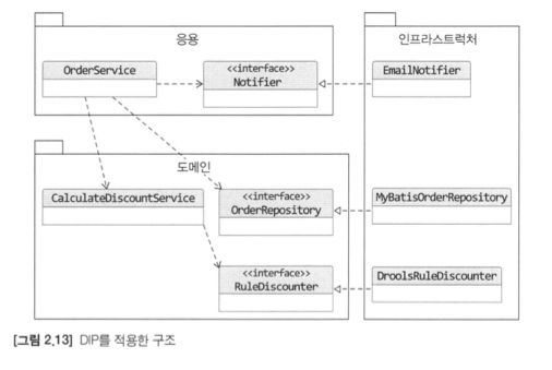 이렇게 구성할 때 주의할 점은 인터페이스는 도메인 계층에 있어야 합니다. 위의 사진은 잘못된 예시를 보여 줍니다.