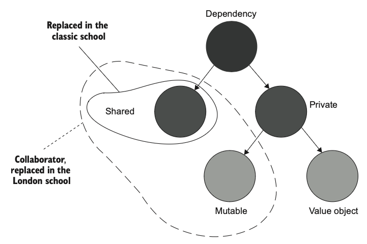 - 런던파에서는 값객체 같은 불변 의존성을 제외하고는 모두 테스트 더블로 대체하여 사용합니다.
